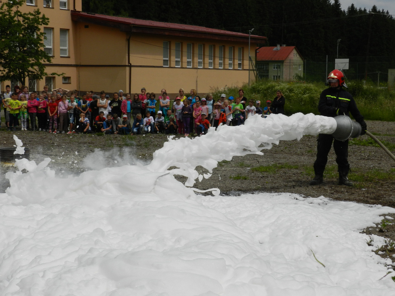 Dňa 18.6.2015 naši členovia navštívili ZŠ v Zákopčí, kde preverili vedomosti a schopnosti žiakov o požiarnej ochrane, civilnej ochrane a správaní sa v mimoriadných situáciach. Žiaci si vyskúšali hasenie ručným hasiacim prístrojom a gefovakom. Účelové cvičenia ukončili ukážkou, ako nehasiť horiaci olej a potom ukážkou, ako horiaci oheň uhasiť.